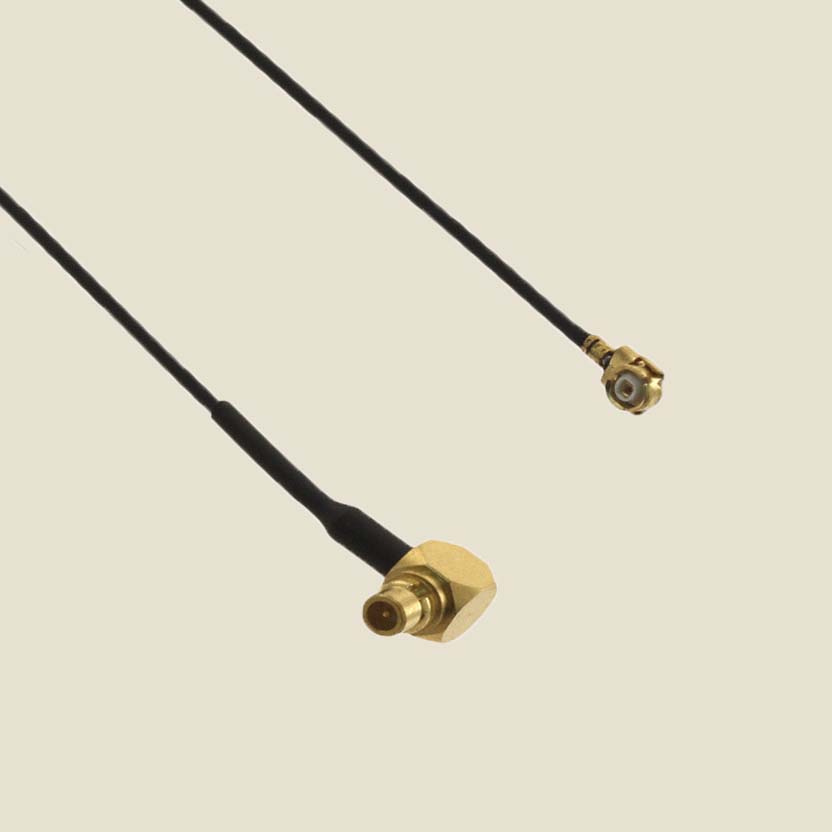 Cable Assembly, MMCX right angle plug to U.FL plug, 2.5 inch. Frequency DC to 6 GHz.