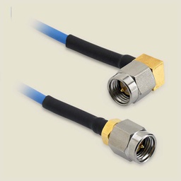 SMA Male to SMA Male Right Angle cable assembly using 085CJ Jacketed Conformable Coax, 22 inches long, Operating to 18 GHz.